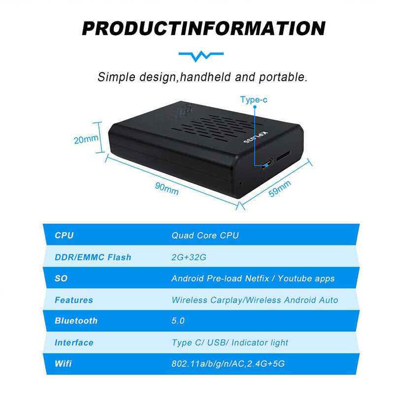 - Μετατροπή του ενσύρματου εργοστασιακού Apple Car Play & Android auto σε ασύρματο, με αυτόματη σύνδεση κατά την είσοδο σας στο αυτοκίνητο.