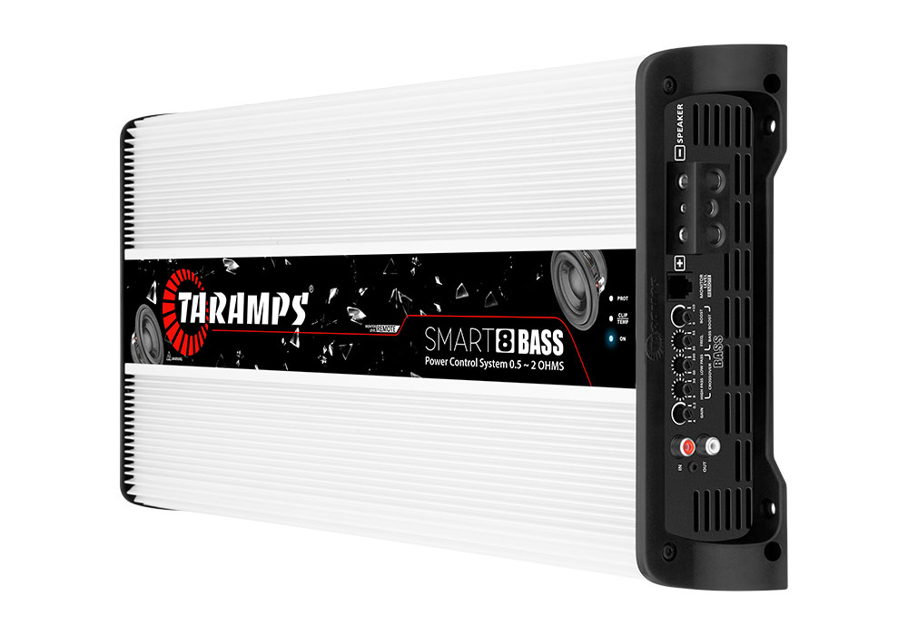 Το Smart 8 BASS είναι μια ακόμη καινοτομία της Taramps για συστήματα ήχου αυτοκινήτου. Η αποκλειστική τεχνολογία Power Control System, που εφαρμόζεται πλέον στα υπογούφερ, εξασφαλίζει ακόμη μεγαλύτερη ασφάλεια και ποιότητα στις χαμηλές συχνότητες παρακολουθώντας τον ενισχυτή κατά τη λειτουργία. Είναι ένας πολυκάναλος ενισχυτής πολλαπλής σύνθετης αντίστασης που αποδίδει ισχύ 8000 Watt RMS σε οποιαδήποτε σύνθετη αντίσταση μεταξύ 0,5 και 2 Ohms. Ο διπλός στιβαρός σύνδεσμος του επιτρέπει τη χρήση καλωδίων τροφοδοσίας με μεγαλύτερο εύρος για καλύτερη απόδοση. Τέλος, είναι συμβατό με το LED Clip Monitor M1 και το νέο Monitor Level Remote. Απολαύστε μια εξαιρετική εμπειρία ήχου με πιο εντυπωσιακά μπάσα!