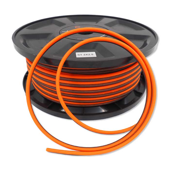 Καλώδιο ηχείων 2x2,5 (12GA) για την σύνδεση των ηχείων του αυτοκινήτου σας, με ενισχυτή ή χωρίς ενισχυτή. Είναι ιδανικό για την σύνδεση του subwoofer σας ή όπου χρειάζονται συνδέσεις ηχείων υψηλής ισχύος. Εξαιρετικά εύκαμτο καλώδιο με χονδρή μόνωση για την αποφυγή τραυματισμού του στα δύσκολα σημεία του αυτοκινήτου. (κάτω απο πατώματα, λαμαρίνες κλπ). Η κουλούρα περιέχει 50μέτρα καλωδίου.
