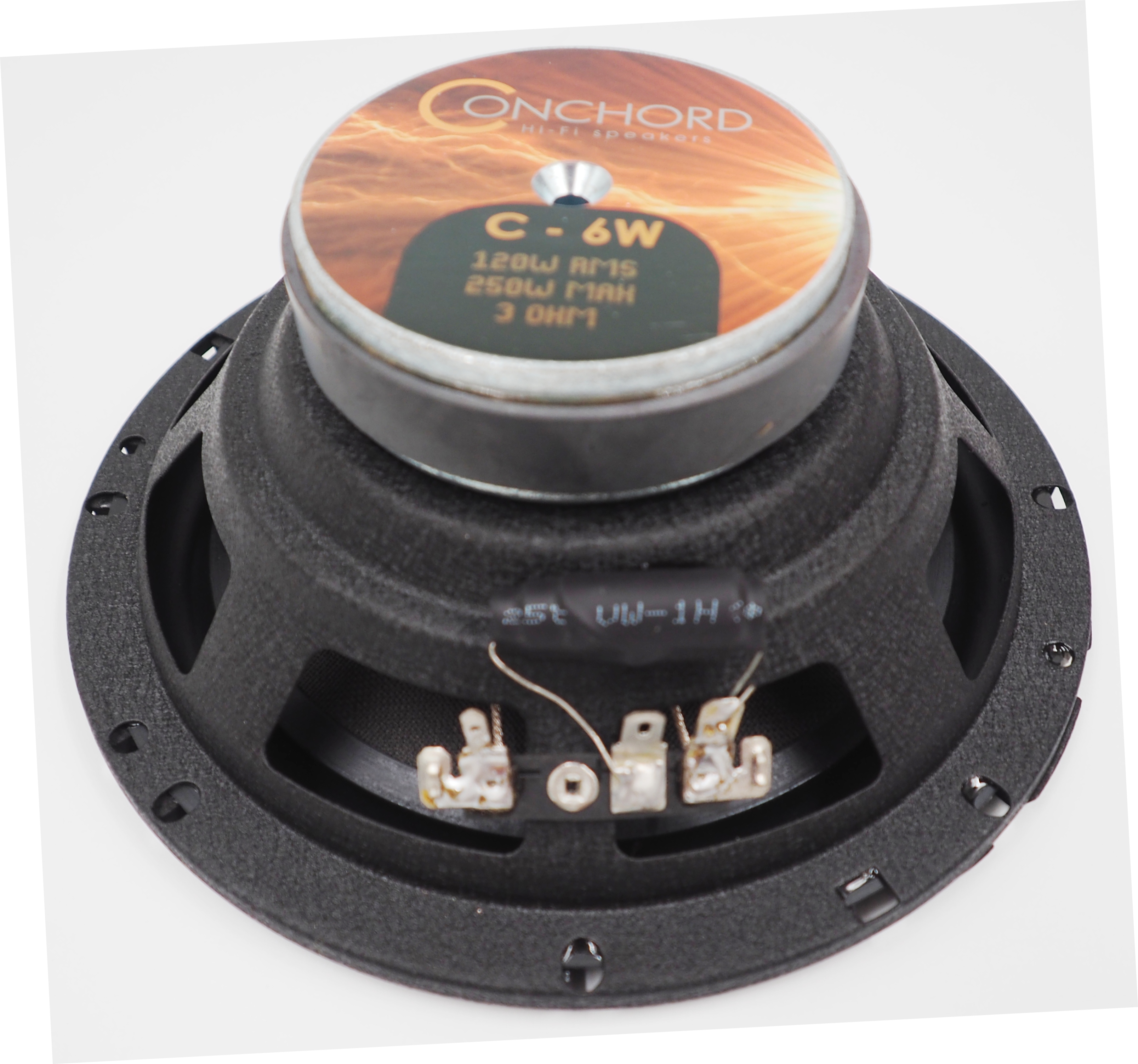 Το διαιρούμενο C 6 τηςConchord είναι η ιδανική λύση στην χαμηλή κατηγορία τιμής και προτείνεται ως αντικατάσταση φθαρμένων ή παλιών μεγαφώνων. Ωστόσο θα εκπλαγείτε με την απόδοσή τους στις μεσαίες και υψηλές συχνότητες, με τον κρυστάλλινο ήχο τους και την καθαρότητα σε όλο το εύρος συχνοτήτων. Με αντίσταση στα 3 οhm και ισχύ 120 Watt RMS, υπερκαλύπτονται τα περισσότερα εργοστασιακά ηχοσυστήματα σε μια πραγματικά value for money πρόταση! Σημαντικό είναι επίσης το ελάχιστο βάθος τοποθέτησης καθώς και η ευκολία εγκατάστασης. Το μεγάφωνο mid-bass διαθέτει ενσωματωμένο crossover ενώ το tweeter διαθέτει αυτόνομο, δικό του crossover 2ης τάξης. Το C6 μπορεί να δεχτεί και να διαχειριστεί άνετα την ισχύ οποιουδήποτε ενισχυτή ώς 150watts Rms.